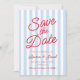 Modern Minimalist Blue and Red Stripes Wedding Save The Date