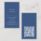Modern Minimalist Vertical Logo QR Code Business Card with Blue Background and White Text