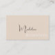 Boho Chic Beige Script Modern Minimalist Business Card. Personalize the monogram, script, social media details of this clean,simple feminine typography. Ideal for interior designers, event planner, wedding planners, consultants, makeup artist and salons. A perfect card for your business!