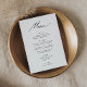 Let your guests know what's on the menu with this elegant 5x7 menu card, featuring a black script and minimalist design.