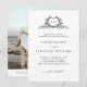 This elegant photo wedding invitation features refined calligraphy and clean typography in a simple, timeless layout. The delicate botanical monogram heart shaped crest adds a subtle romantic touch while keeping the design modern and chic. Perfect for couples who love minimalist, classic stationery with a hint of rustic charm, this invitation suits formal, garden, or vintage-inspired weddings. The sophisticated black and white palette ensures a stylish and timeless look that will beautifully introduce your special day.
