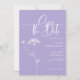 Modern minimalist and simple design. Modern blend of simple handwritten typography in white, beautiful lavender color of background and adding to it subtle floral touch - white sketch of Queen Anne Lace. You can personalize the wording, font style, color and size of this invitation card. Match items available in collection