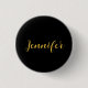 Modern Minimalist Calligraphy Name Black Gold Button