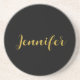 Modern Minimalist Calligraphy Name Black Gold Coaster