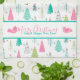 This Christmas pattern of Christmas trees is designed in a modern Swedish minimalist style in modern pink, green and teal colors. There are 8 different Christmas trees total, some with holiday ornaments and some without. There is also a little pink birds floating around the design too. You can make the pattern smaller or bigger on this kitchen towel. Personalize this kitchen towel with your own greeting.
