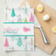 Modern Minimalist Christmas Tree Pattern Pink Teal Kitchen Towel
