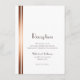 A modern white wedding reception enclosure card featuring two stylish copper stripes on the left of the text.