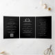 This elegant tri-fold wedding invitation features refined calligraphy and modern typography in a clean, minimalist layout. The delicate botanical crest monogram adds a timeless romantic touch while keeping the overall design chic and sophisticated. The tri-fold format provides generous space to include ceremony details, wedding timeline, venue information, icons, and a convenient QR code linking to your wedding website. A beautiful photo section on the back adds a personal touch, making this design perfect for modern, classic, or formal celebrations. Stylish, practical, and thoughtfully designed, this invitation allows couples to share all essential wedding information in one elegant piece of stationery.