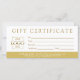 Modern minimalist business gift certificate featuring your custom logo, business name, and message in a clean white and gold design. Perfect for small business owners, salons, spas, boutiques, or corporate gifting. Personalize with your own text and company branding. A simple, professional way to offer gifts, promotions, or store credit. Elegant and custom-made to match your unique brand style. Great for holidays, birthdays, thank you gifts, or special events.