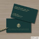 Make a lasting impression with our Modern Minimalist Dark Green Business Cards featuring classic typography. The back features a striking gold geometric emblem that can be replaced with your logo, along with space for an industry disclaimer. Perfect for accountants, tax preparers, financial consultants or any business professionals looking to make a lasting impression.