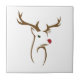 A modern twist on holiday tradition—this ceramic tile features a minimalist line art deer with wide, crown-like antlers, a tilted profile, and a single evergreen-hued eye. A festive red accent adds a pop of holiday charm against the crisp white background, giving the design an elegant yet understated look.