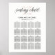 This modern and elegant wedding seating chart features a trendy geometric shape and fancy black calligraphy. Easily delete any tables you do not need for your wedding guests.