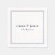 Modern minimalist double border wedding napkins. Lower case navy blue text name field and personalized notation or wedding location.