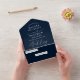 Modern Minimalist Elegant Navy Blue White Wedding All In One Invitation