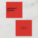 Simple elegant typography plain red and black trendy networking square business card. Suitable for a teacher, writer, designer, photographer, consultant, makeup artist, hairstylist, or any other independent profession.