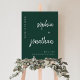 This elegant, minimalist wedding welcome sign features white modern script typography and clean, sans serif text for a simple and stylish emerald green design you will love.