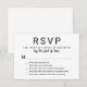 Add a touch of humor to your response cards with this modern minimalist RSVP featuring playful "bells" themed reply options that will delight your guests. The clean black-and-white design pairs bold sans-serif typography with an elegant script reply-by date and the classic M-line name format. The witty attendance options give guests five amusing ways to let you know if they will or will not be attending. All text is fully editable so you can customize the humorous responses to match your personality.