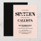 Modern Minimalist Girly Blush Pink Black Sweet 16 Invitation