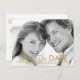 Very clean and simple save the date postcard with gold texts.