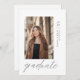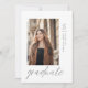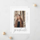 Celebrate years of hard work with our modern minimalist graduation announcement invitation in a simple black and white color scheme. Featuring a single photo and the word "graduate" in a modern script font. Flip it over to find the graduation party details.