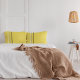 This trendy pillowcase features a minimalist design with vertical lines in white, grey, and black on a yellow background. Great for contemporary bedrooms. Colors are fully customizable by clicking on Edit design.