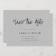 A simple modern save the date card. Personalize this minimalist gray and black design to have your personal details and message.