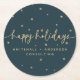 Modern Minimalist Happy Holidays Business Name Round Paper Coaster