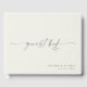 Preserve the heartfelt messages from your wedding guests in this modern and minimalist guest book. The elegant script "Guest Book" is paired with a subtle heart icon, offering a sophisticated touch. This design is perfect for couples seeking a clean and refined aesthetic for their wedding day. The customizable area below allows for the couple's names and wedding date to be elegantly displayed, making it a unique reflection of your union. Your guests will love leaving their notes and well-wishes in this beautiful, understated keepsake.