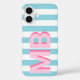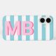 Create your own custom monogram iPhone case featuring your personalized initials on a striped background.