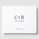 A sleek, minimalist wedding guest book featuring the couple's initials in sophisticated serif typography with the wedding date centered below. The clean white cover and understated design make a timeless keepsake. The spine is also personalized with the couple's full names and date. Customize the couple's initials, names, and wedding date.