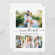 Modern Minimalist yet Elegant Calligraphy Ink Pen Script 4 Photo Wedding Engagement Announcement Save The Date Card with your QR Code wedding website address on back of card