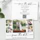 Modern Minimalist yet Elegant Calligraphy Ink Pen Script 5 Photo Wedding Engagement Announcement Save The Date Card with your QR Code wedding website address on back of card