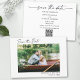 Modern Minimalist yet Elegant Calligraphy Ink Pen Script Couple Photo Wedding Engagement Announcement Save The Date Card with your QR Code wedding website address on back of card