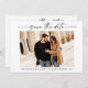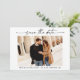 Modern Minimalist yet Elegant Calligraphy Ink Pen Script Couple Photo Wedding Engagement Announcement Save The Date Card with your QR Code wedding website address on back of card