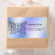 Elegant line drawing of butterfly on blue holographic background. Your name is below.