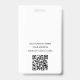 This customizable employee name tag features a bold centered logo, clear name and job title, and a functional back with QR code and company details.