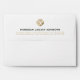 Elevate your business correspondence with our Modern Minimalist Luxury Business Envelope. This A7 envelope features a clean and sophisticated design in clean white with a premade geometric logo and classic dark green and golden typography. Customize it with your logo, company name, address, and contact information in classic golden typography for a professional touch. Perfect for sending out cards, client communications, invitations, and more.