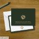 Make a lasting impression with our Modern Minimalist Luxury Business Note Card. This sophisticated note card showcases a rich green background with a premade brushed gold geometric logo that can be used as is or replaced with your logo. Your company name and contact information are listed below in classic golden typography. The back features space for your note, framed in green with a golden logo in the lower thirds, adding to its cohesive design and modern appeal.