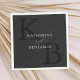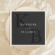 Monogram wedding napkins featuring modern minimalist typography name and initials in matte black color design.