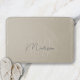 Modern Minimalist Monogram Beige Script Name Bath Mat