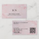 This elegant business card design features a soft pink marbled watercolor background that adds a touch of sophistication and femininity, making it ideal for beauty, wellness, fashion, or creative industry professionals. The minimalist layout uses clean black typography for a refined and modern look, with a customizable monogram element that adds a personal branding touch. A built-in QR code on the back allows for seamless digital engagement, while clear contact and social media icons support a strong professional presence. This design balances stylish aesthetics with practical functionality for a polished, professional first impression.