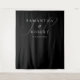 Black and white wedding reception or photo backdrop featuring modern minimalist typography design.
