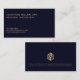 Modern Minimalist Navy Blue Gold Logo Business Card