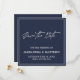 Modern minimalist save the date card. Navy blue background and ivory text. Click "customize it" to edit text fonts and colors or change the background color.