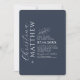 Yes, you can print on the back of your invitation for free! Most designs already have a corresponding design on the back that can be personalized using the Design Tool and going to Layers. This is a great way to communicate more information or further personalize your Modern Minimalist Navy Blue Wedding Invitation. The option is really up to you.