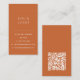 Modern Minimalist Vertical Logo QR Code Business Card with Burnt Orange Background and White Text