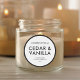 Personalized Modern Minimalist Personalized Candle Label Sticker. Create a custom modern candle label with this template featuring branding, scent type and product details.