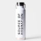 This is a fun modern water bottle with the phrase "Source of Hydration". The back can be customized with a name or custom phrase/text or company name or event. It would also make a custom great gift idea for a wedding party to use during rehearsals.