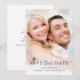 This simple and elegant black and white wedding save the date card features your personal photo on the front, with a mix of modern handwritten script and serif text. There is room for additional information on the back, including your wedding website details.