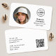 Impress with a stylish and professional business card. This double-sided template features your photo in a circle, and is personalized with a name, logo, contact information, and a scannable QR code. Customize the text to match your brand. This modern design would suit many different professions, including fashion stylists, beauty consultants, photographers, boutique owners, makeup artists, influencers and more! Printed colors: black and white.